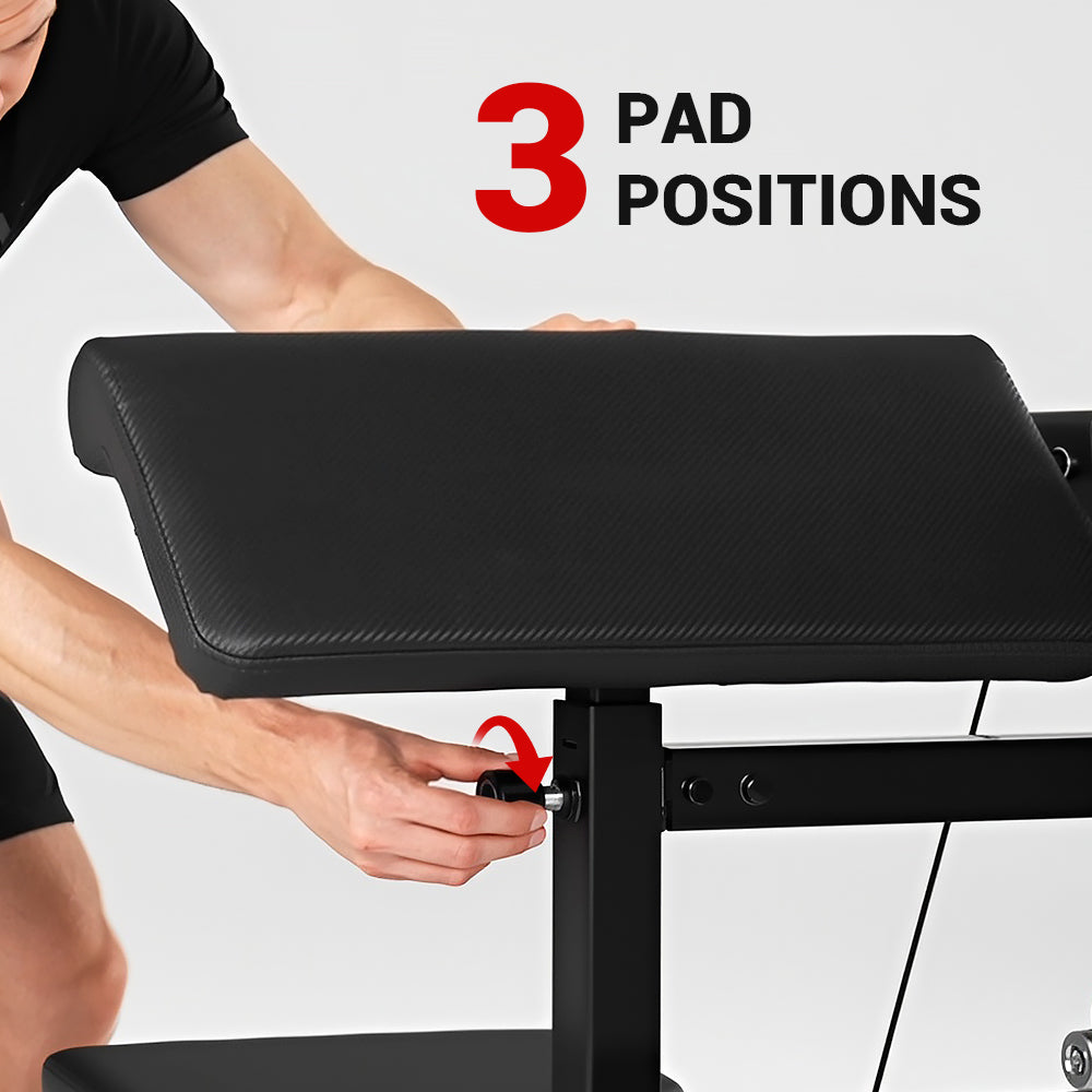 The First Home Bicep Curl Machine with a Commercial-Grade Cable System. The WJ00 is engineered for superior comfort and effectiveness, bringing the performance of professional gym equipment into your home. To maximize your results, the WJ00 offers unparalleled adjustability for a truly personalized starting position: 25 Sundial Positions, 5 Handle Positions, 3-Point Pad Adjustment, and 7-Point Seat Adjustment. Find your perfect fit and unlock effective, comfortable training!