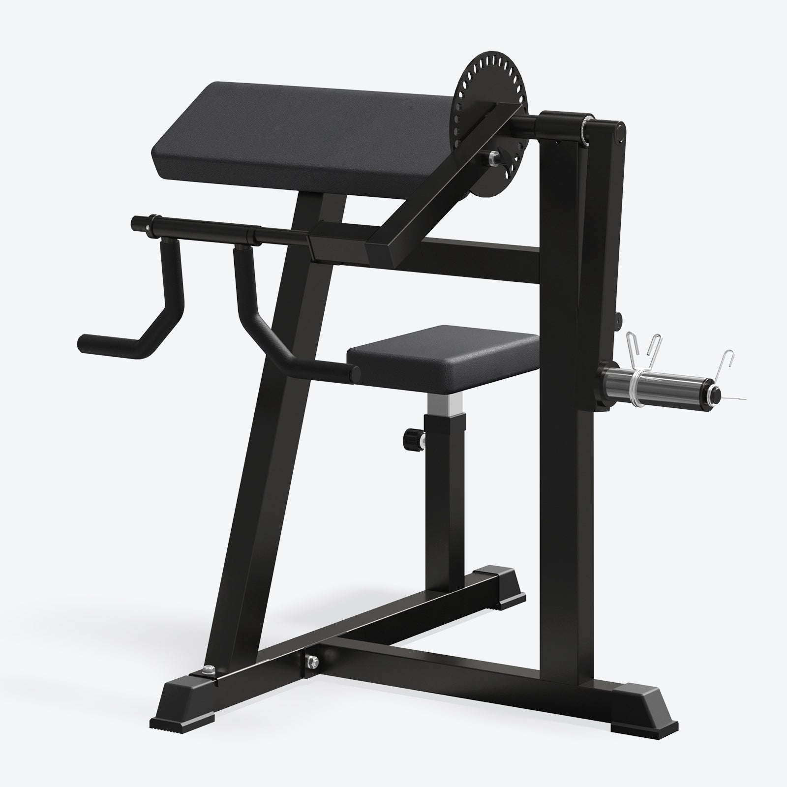 - 3 Adjustable Parts: 12.4 "x8.5", 2" thick seat pad has 7 adjustable heights to choose from, which can meet the needs of people of different heights. The multi-position sundial of the bicep tricep curl machine offers a wide choice of handle lengths - just toggle the pins to adjust to the right position for bicep curls/preacher curls and tricep extensions/ pushdowns. The swiveling, soft handle has Three gripping angles to take the strain off your wrists and let you enjoy your arm-blasting workouts!
