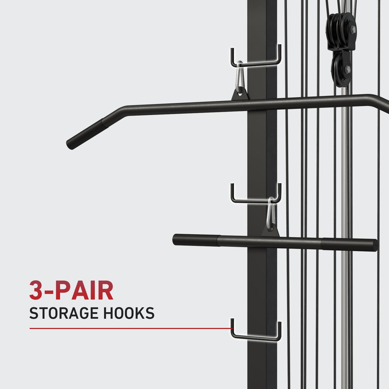 - Free Attachments for Fully Body Workout: Additional 3 FREE ACCESSORIES COME: Lat pull-down Bar, Row Bar, and 2*Strap Cable Handles. Stop wasting your home space and budget on buying a lat pulldown machine or Indoor rower. Our all-in-one omnipotent home gym cable machine gets you back, which features a Pull-up Bar, a Lat Pull Down System as well as a Low Pulley System to unlock your full-body workouts. And Multi-Handles Pull-up Bar allows wide, narrow, and more pull-ups as you want.