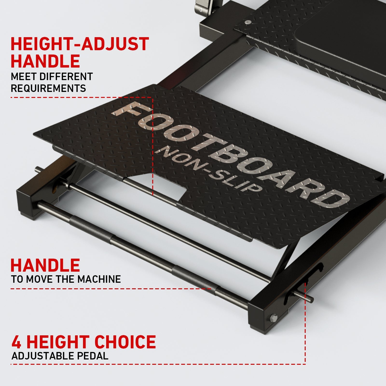 - Why 4 Positions: Our new generation glute bridge machine is designed with 4 angles on the footboard. Allows users to customize the height of the pedal according to their height and preferences. The weight holder features an electroplated design that is resistant to scratches. Fit 1" and 2" plates.