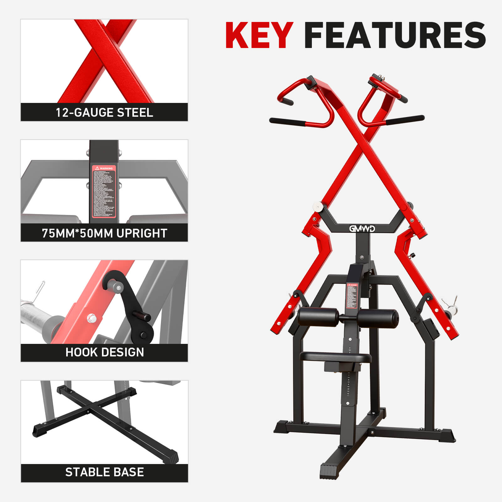 Engage your back muscles: This scissor-style lat pulldown machine lets users pull the handles not only from high to low, like traditional lat pulldown machines, but also from wide to narrow—a unique feature that traditional machines don’t offer. The movement path aligns with the natural direction of your back muscles, making it more effective for engaging all the muscles in your back compared to traditional lat pulldowns.