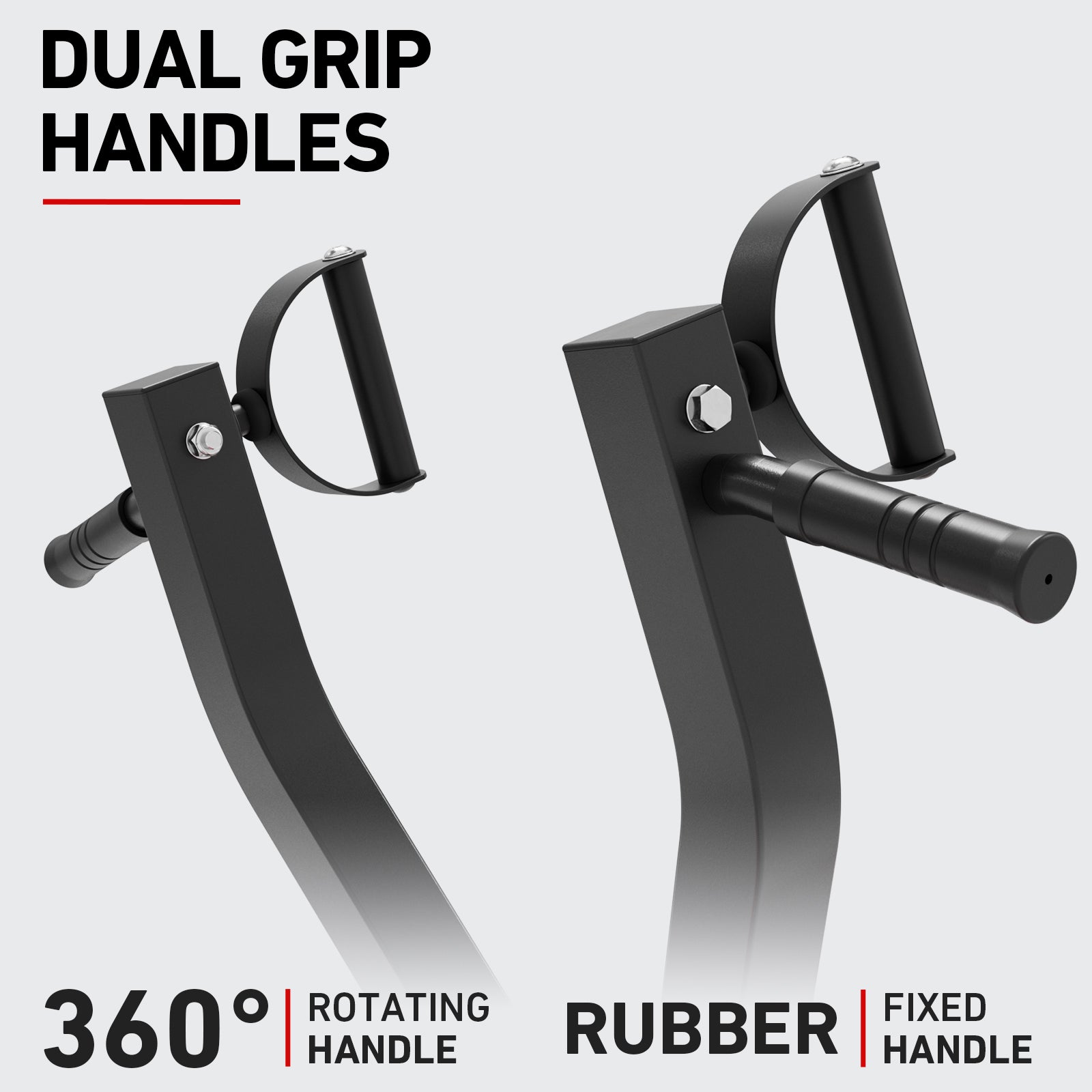 - Dual Grip Handles- This seated row machine plate loaded comes with two different types of grips. The fully rotating grip allows you to rotate your arms naturally for a comfortable motion while rowing, helping to prevent strain and injury. The fixed grip is for precise stimulation, similar to barbell and T-bar row machines. By simply adjusting the width of your grip and the width of your arms to target different muscle groups in your back, you can get the most out of your workout routine.
