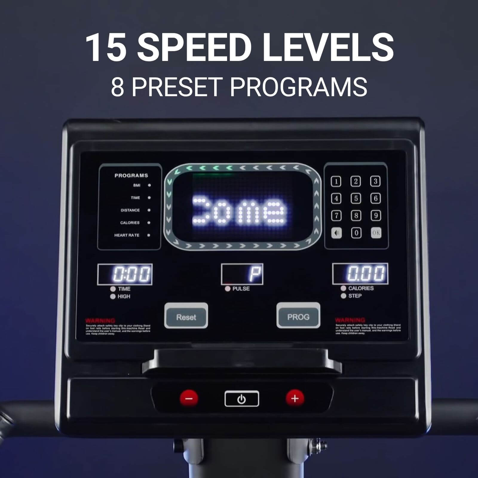 - 【12 Workout Options】Choose from 8 Preset Programs and 4 Targeted Programs. Including fat burner, calorie burner, intervals, and more. Stay motivated with the built-in LED screen(17.3”) displaying your heart rate, calories burned, and other important information.