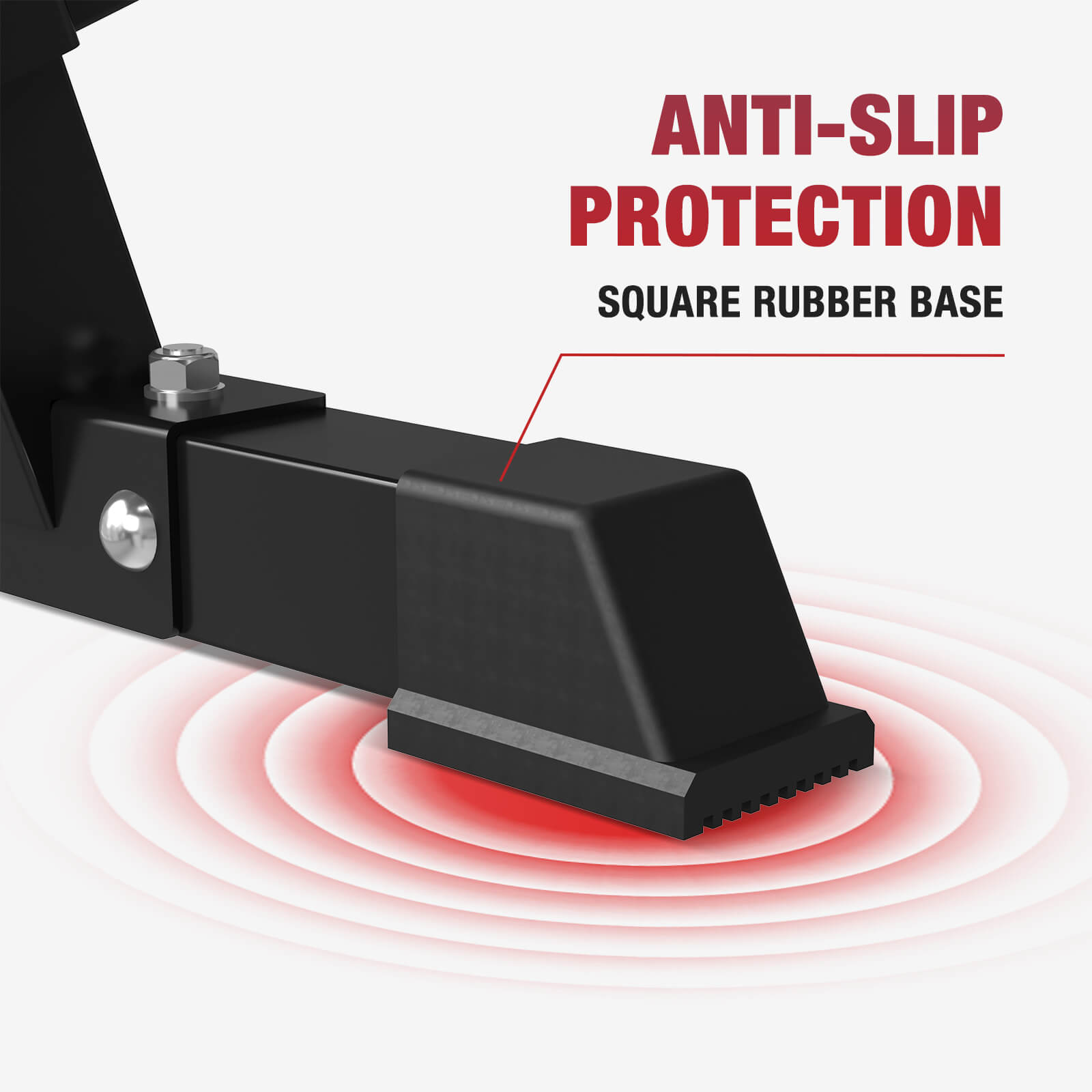 Equipped with 4 rubber covers on the base, the bench protects your floors and offers a solution for uneven surfaces. Enhanced by multiple triangular structures, the GMWD 9-2-3 Adjustable Weight Bench provides unmatched stability, ensuring a secure and safe workout experience.